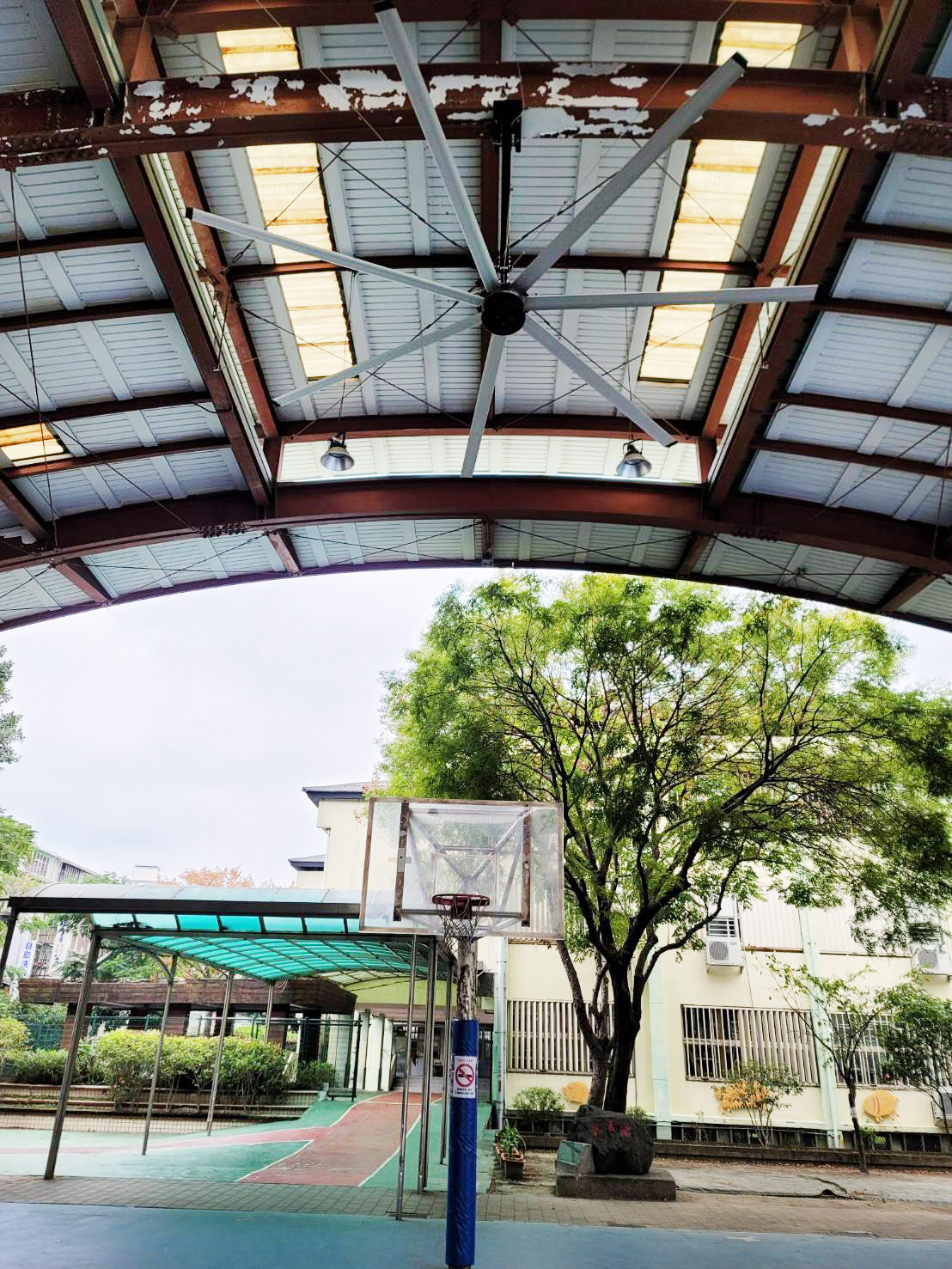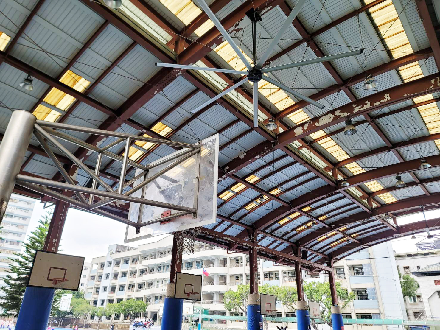 在112年度的校園設施改善計畫中,我們安裝了Powerful Series 10_5米 節能工業吊扇位於樂活館籃球場上空!