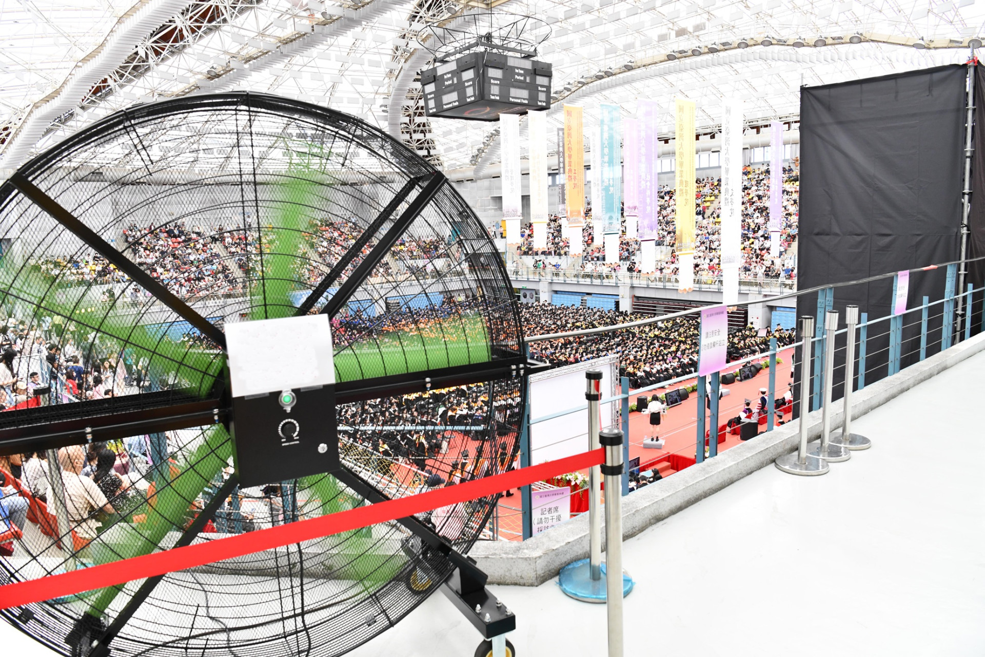 今年在 #台大畢業典禮 上 #移動式工業節能大立扇 成為重要角色,2M大立扇強大的風力帶動體育場內的空氣流通,讓莘莘學子及來賓減少悶熱感、降低心浮氣燥的情緒,靜音沉穩的風聲且不影響到整個流程進行,移動穩固及安全防護網更讓工作人員放心使用,安靜、節能、高效的大立扇,提高了場域的通風性,頗受各界好評!