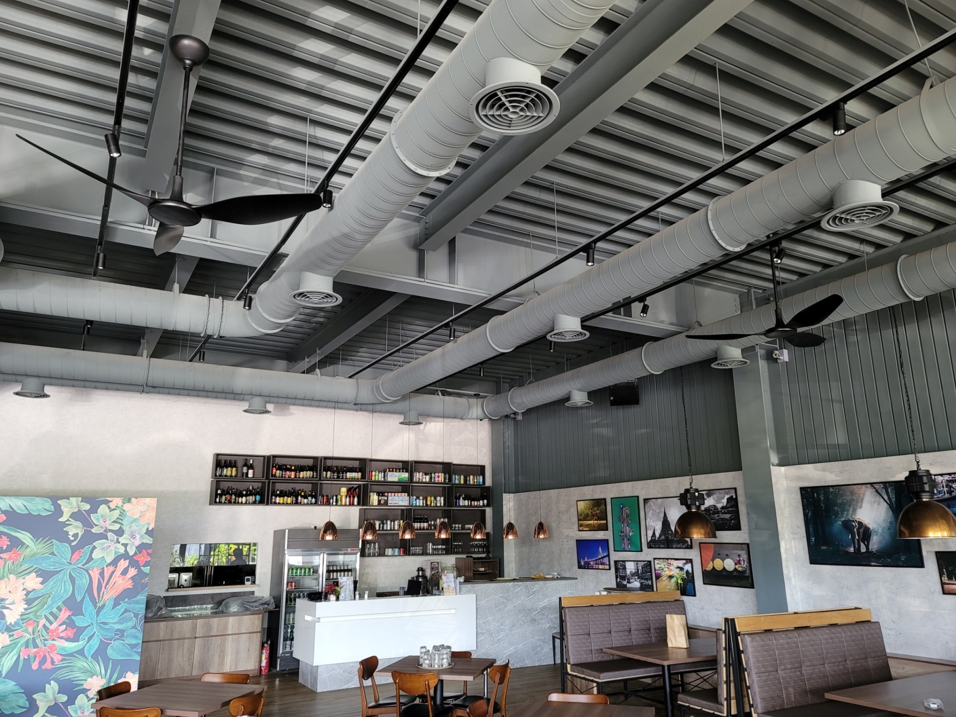 Our Cases 精選案例 首頁 精選案例 居家吊扇實績案例 全部案例 居家吊扇實績案例 Powerful吊扇實績案例 雙流新風機實績案例 換氣扇實績案例 工業立扇實績案例 工業壁扇實績案例 粉塵淨化器實績案例 增壓扇實績案例 居家吊扇實績案例 桃園.Dee Thai Kitchen 泰廚房 Modern HVLS Fan 當代經典吊扇 Dee Thai Kitchen 泰廚房【中路店】客戶採用建準黑色Modern HVLS Fan 當代經典吊扇搭配上方風管的工業風,別出心裁,獨樹一幟的風格,讓各分店特色分明。當然透過吊扇節能也是一開始規劃時就納入的考量。然而最重要莫過於吊扇帶來愜意風感讓賓客流連忘返。 回上一頁
