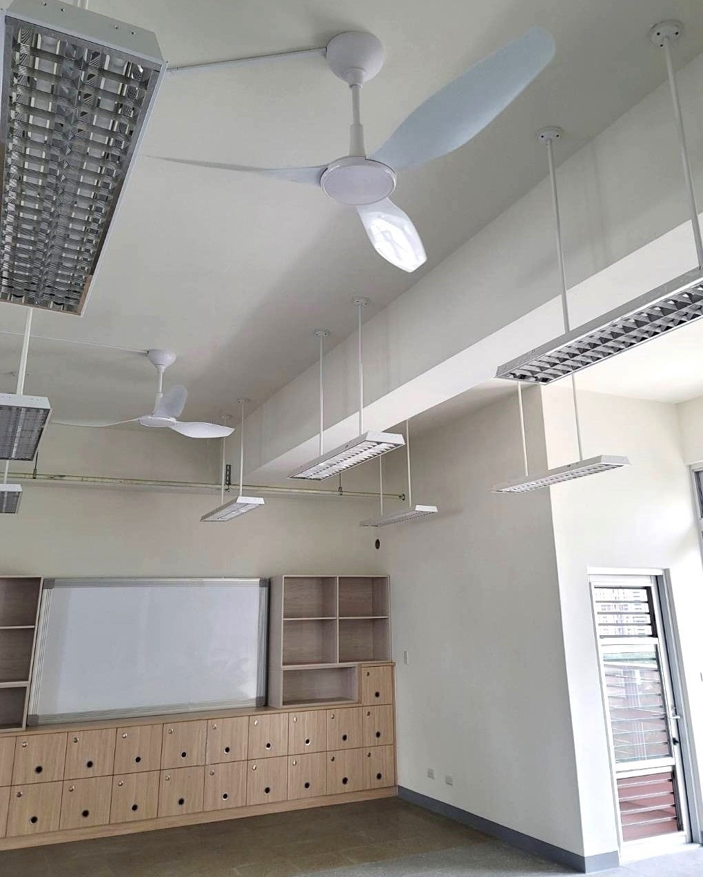 以往學校都採用一般AC旋轉風扇,不僅需設置支數多且轉動聲大,以致影響孩子們學習品質。