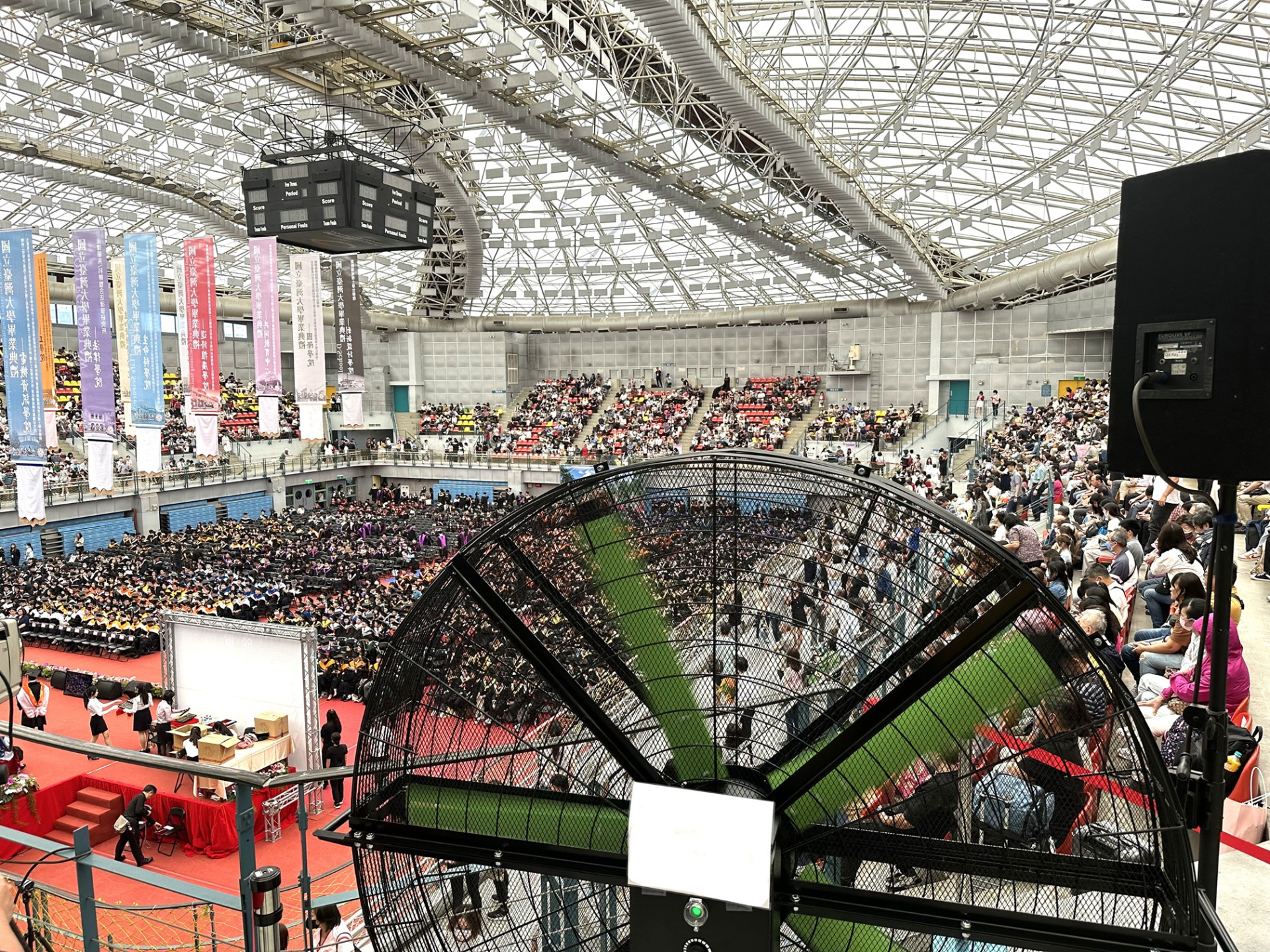今年在 #台大畢業典禮 上 #移動式工業節能大立扇 成為重要角色,2M大立扇強大的風力帶動體育場內的空氣流通,讓莘莘學子及來賓減少悶熱感、降低心浮氣燥的情緒,靜音沉穩的風聲且不影響到整個流程進行,移動穩固及安全防護網更讓工作人員放心使用,安靜、節能、高效的大立扇,提高了場域的通風性,頗受各界好評!